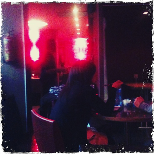 chameleon.He spoke to me in Spanish, and when I replied in English, switched languages. He wanted to know where I was going, if I was married, if I needed company. I said no a few times, walked away, brushed him off and kept looking for somewhere to eat. The best bars were probably the ones that I couldn't see inside with dark heavy doors and tiny brick lined windows. I wasn't feeling quite that adventurous, especially without command of Spanish, so I finally slipped into a black and red restaurant, dripping puddles onto the floor and the glass table top as I sat down, drying my head awkwardly on a paper napkin.
